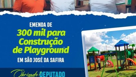 A Prefeitura de São José da Safira, com o apoio do deputado Paulo Abi-Ackel, recebeu R$ 300 mil por emenda parlamentar para a Construção de um Playground.