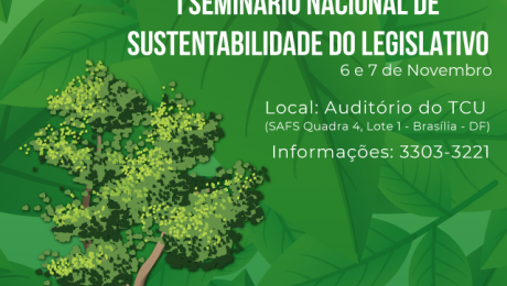 Tribunal de Contas da União (TCU), Senado Federal e Câmara dos Deputados realizarão o 1º Seminário Nacional de Sustentabilidade no Legislativo, nos dias 6 e 7 de novembro, no auditório do TCU, em Brasília. O evento é voltado aos servidores públicos em geral e para outros grupos que tenham interesse no tema.